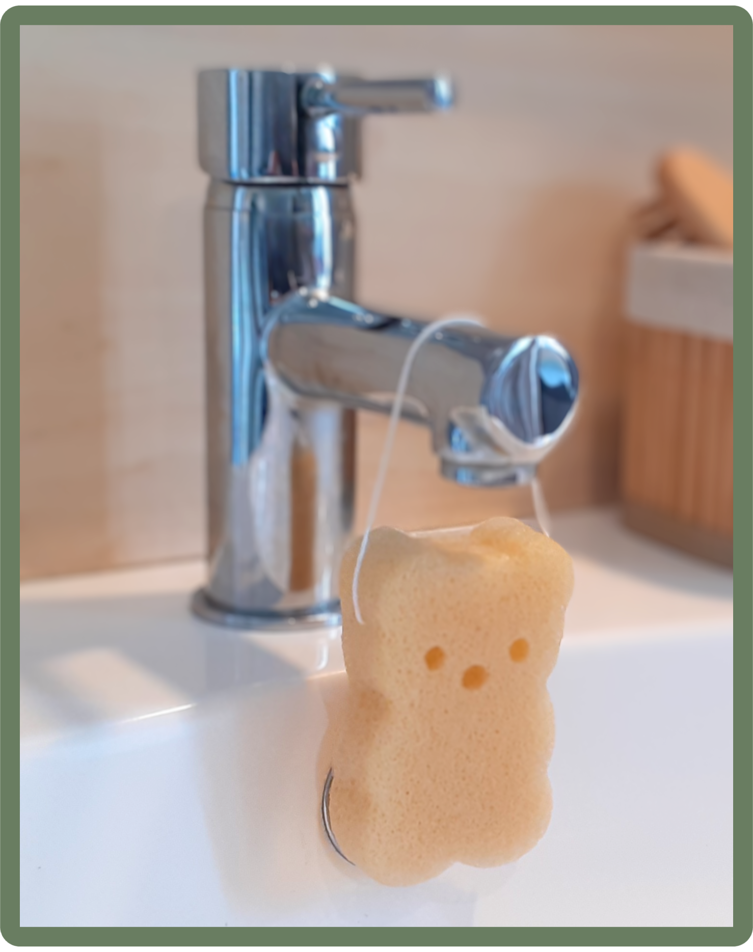 - Rincez soigneusement l'éponge après utilisation puis la faire sécher à l'aide de la petite cordelette