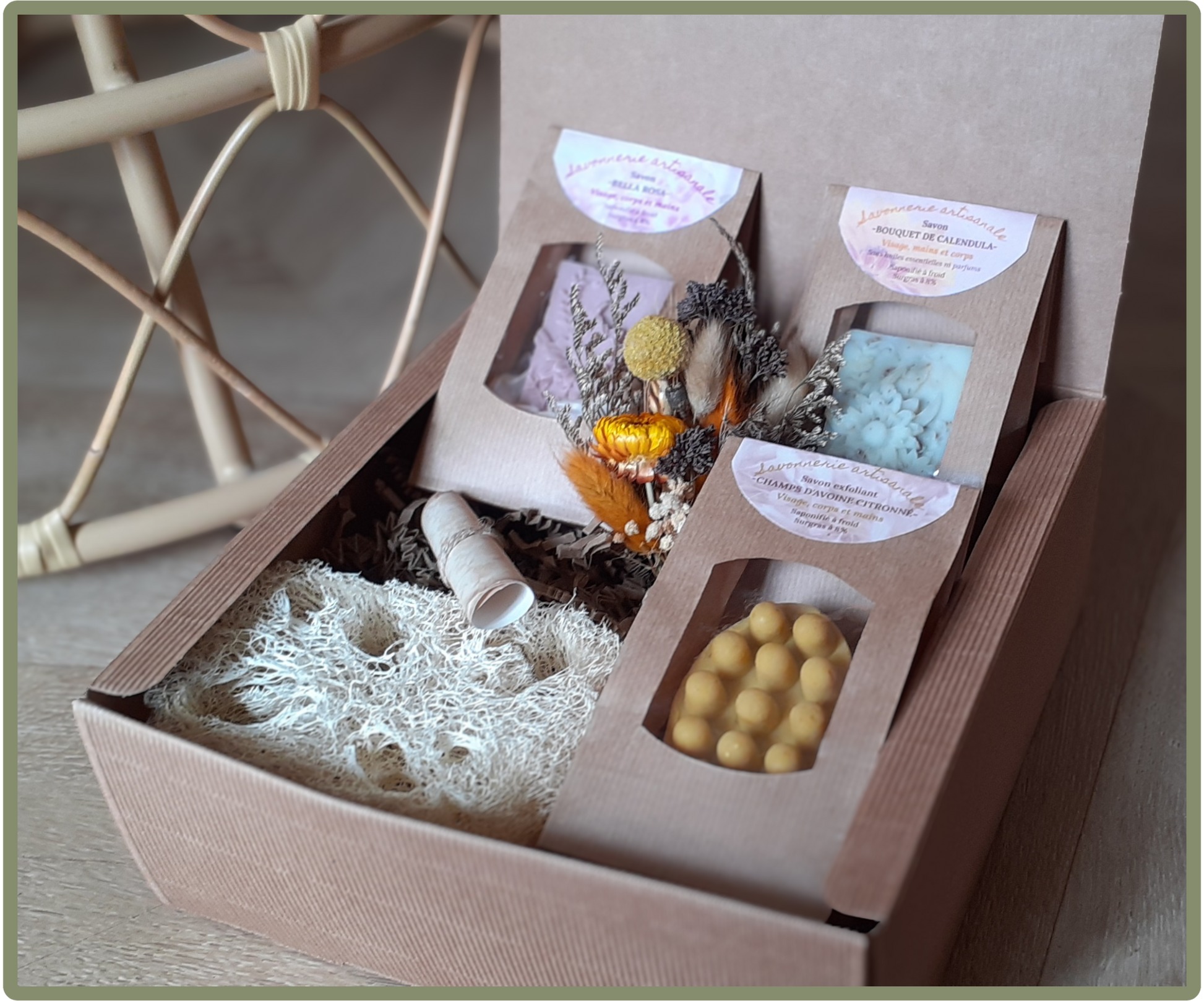 - 3 savons de votre choix :