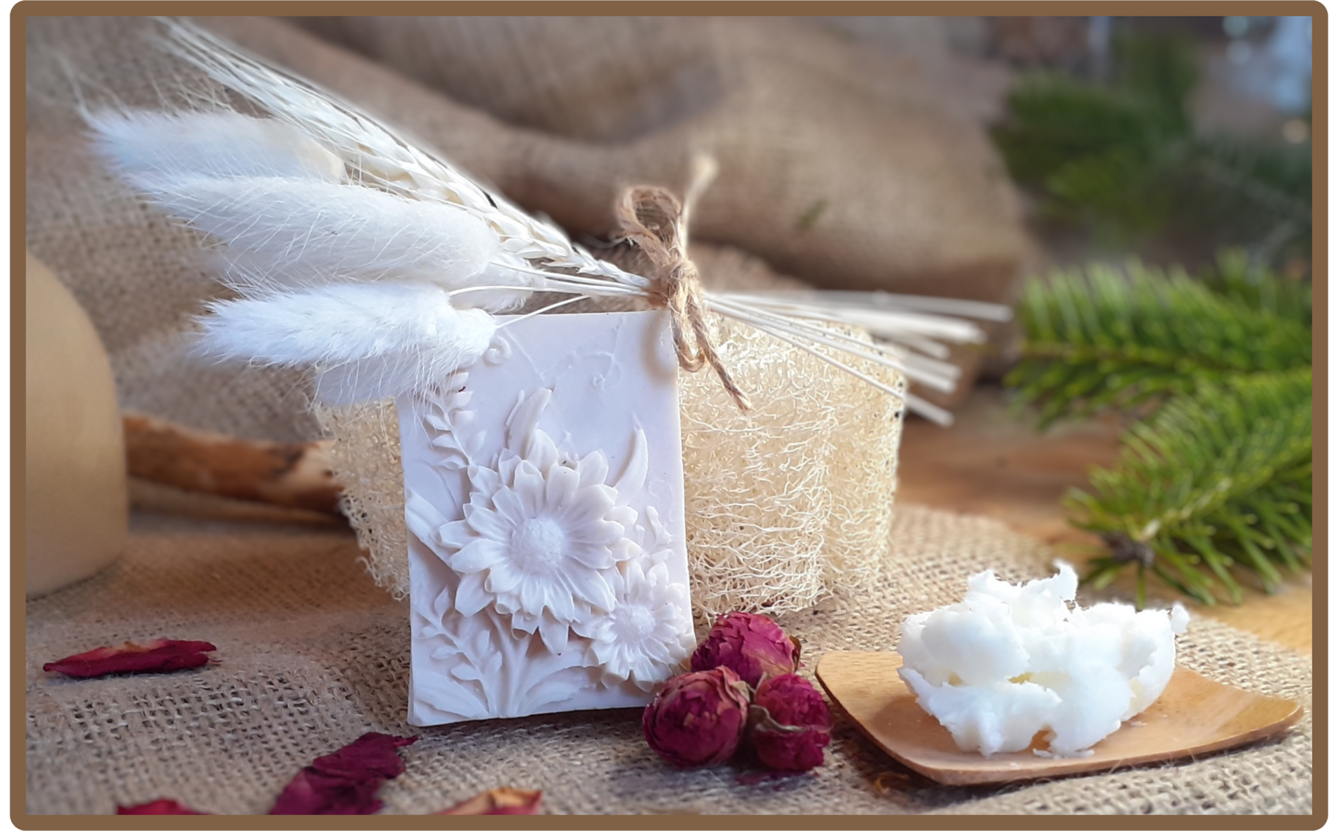 SAVON SOIN VISAGE, CORPS ET MAINS - Surgras à 8% - Riche en glycérine - Beurre de karité certifié biologique.