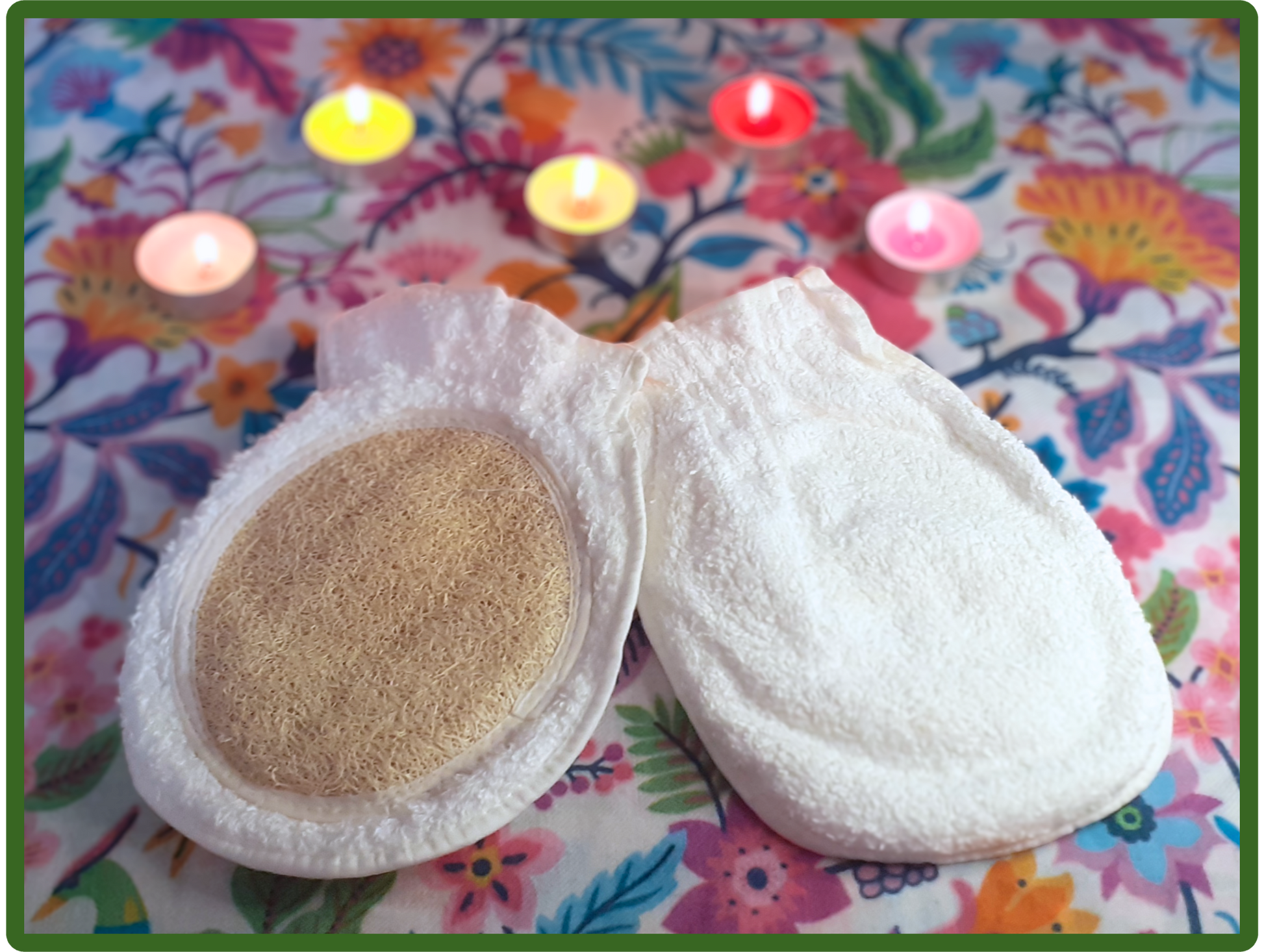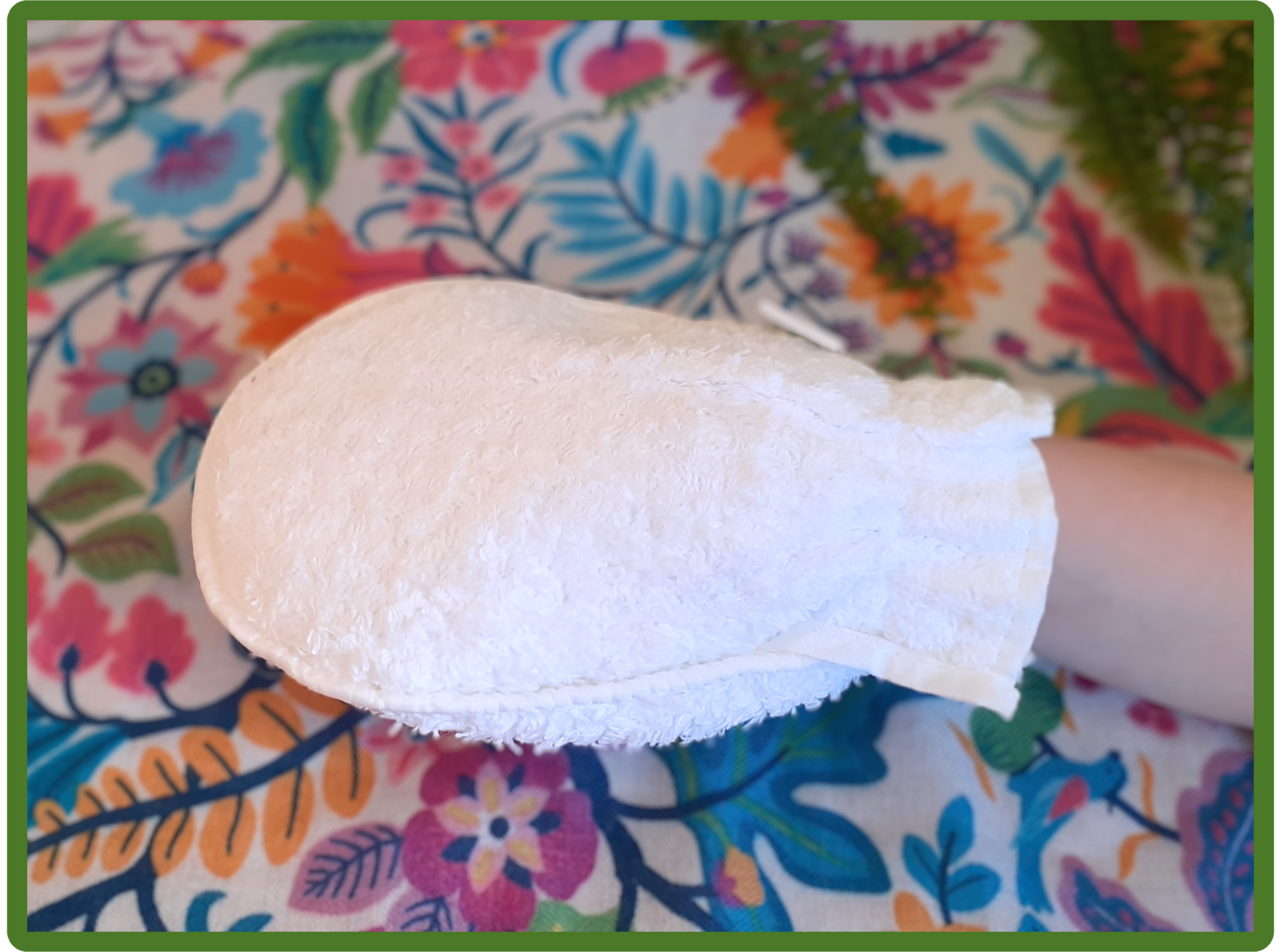 - Mouillez le gant de gommage pour le ramollir, la magie opère…il gonfle !