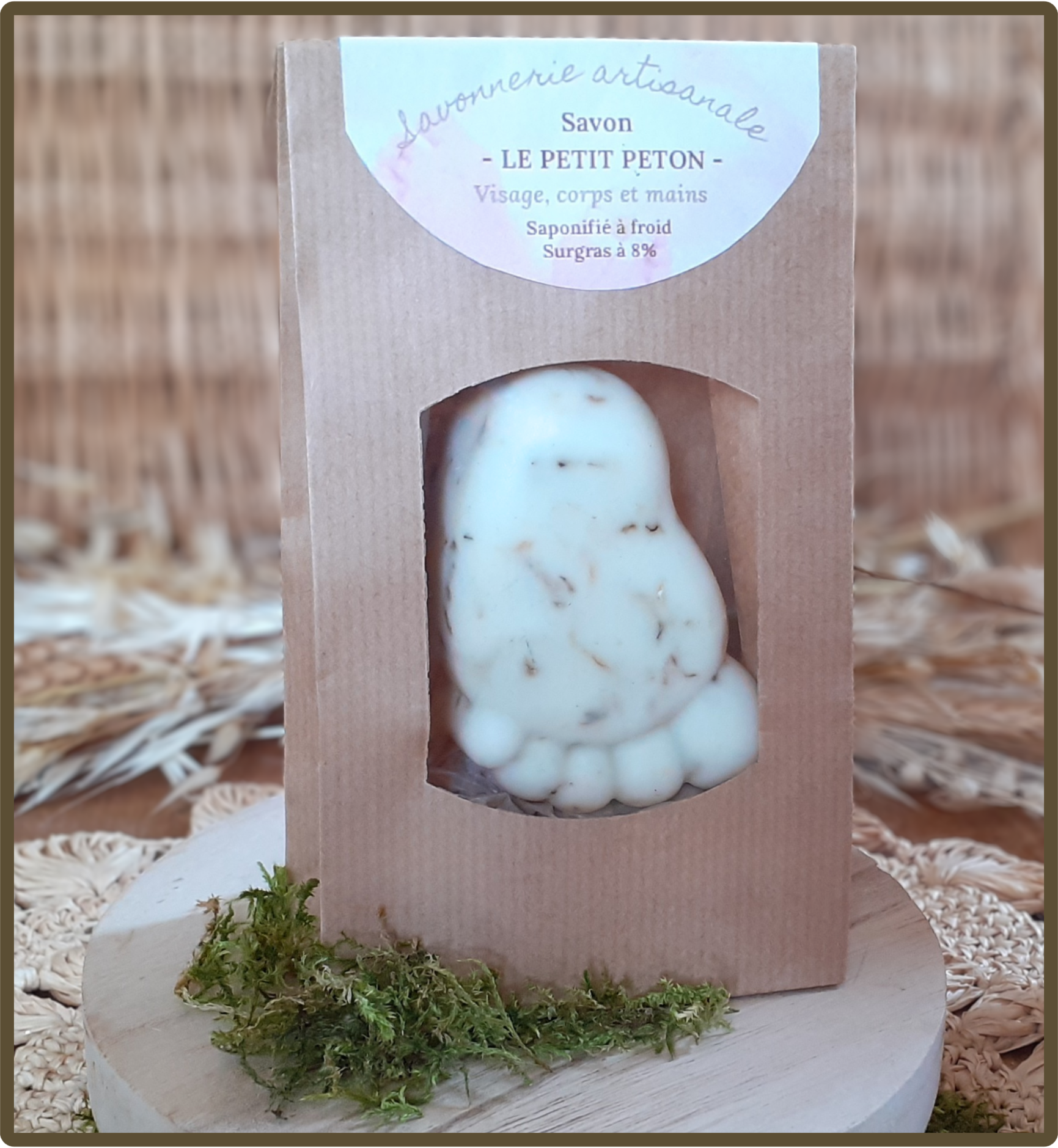 - Un savon Le petit peton tout mignon en forme de pied, enrichi à la cire d’abeille et au Calendula.