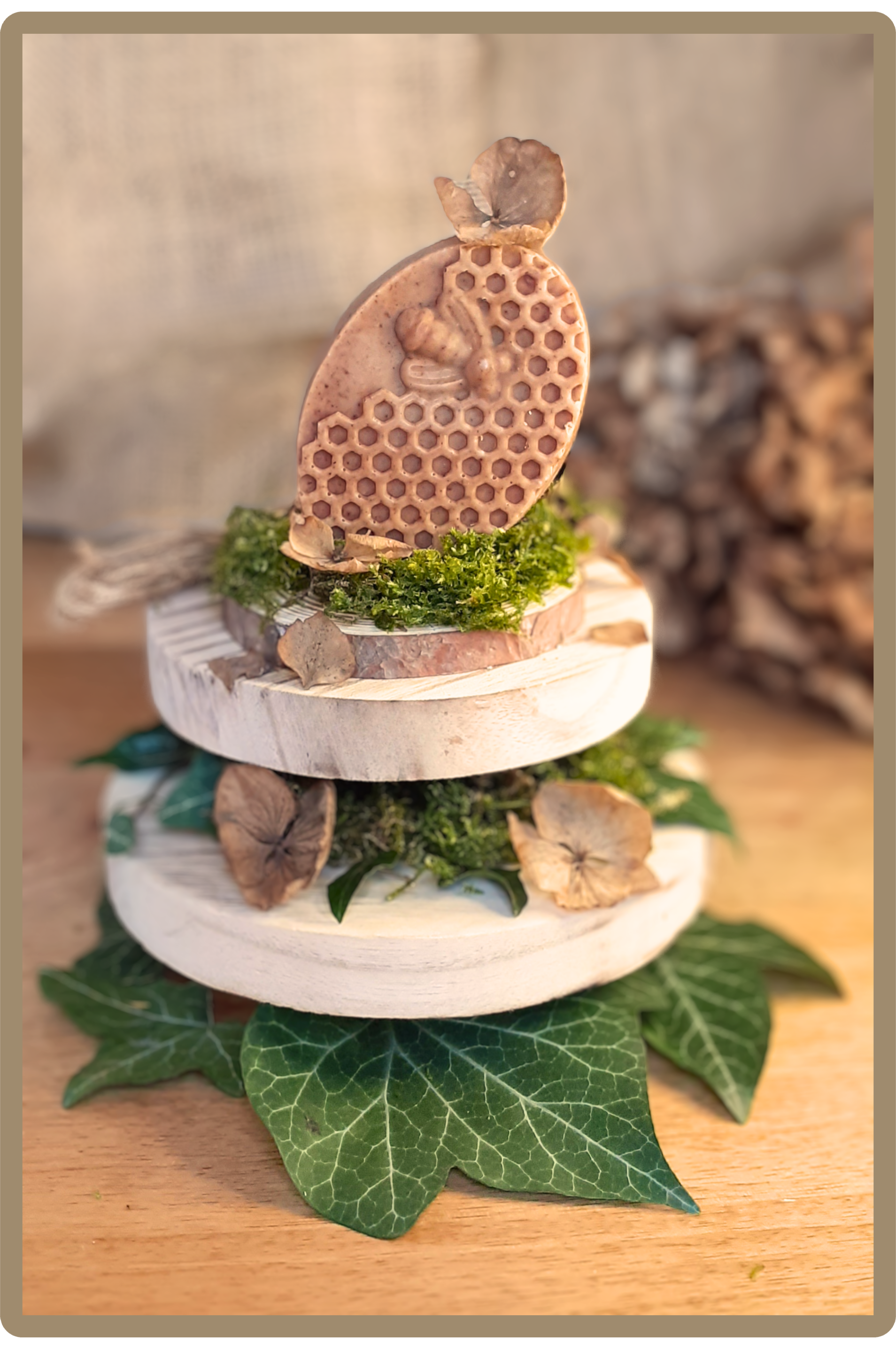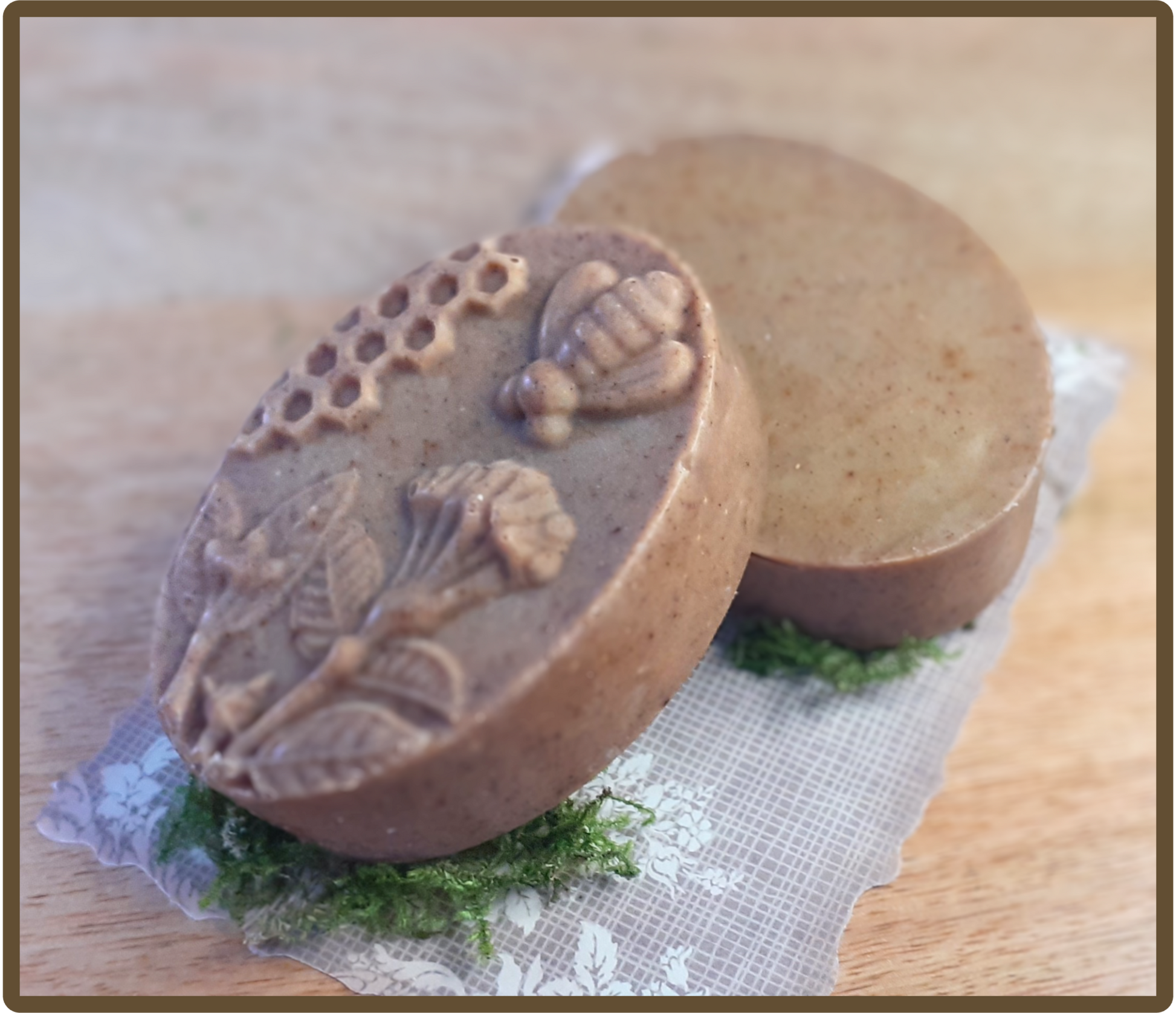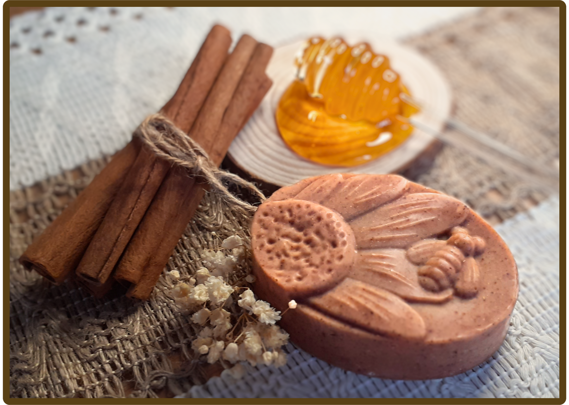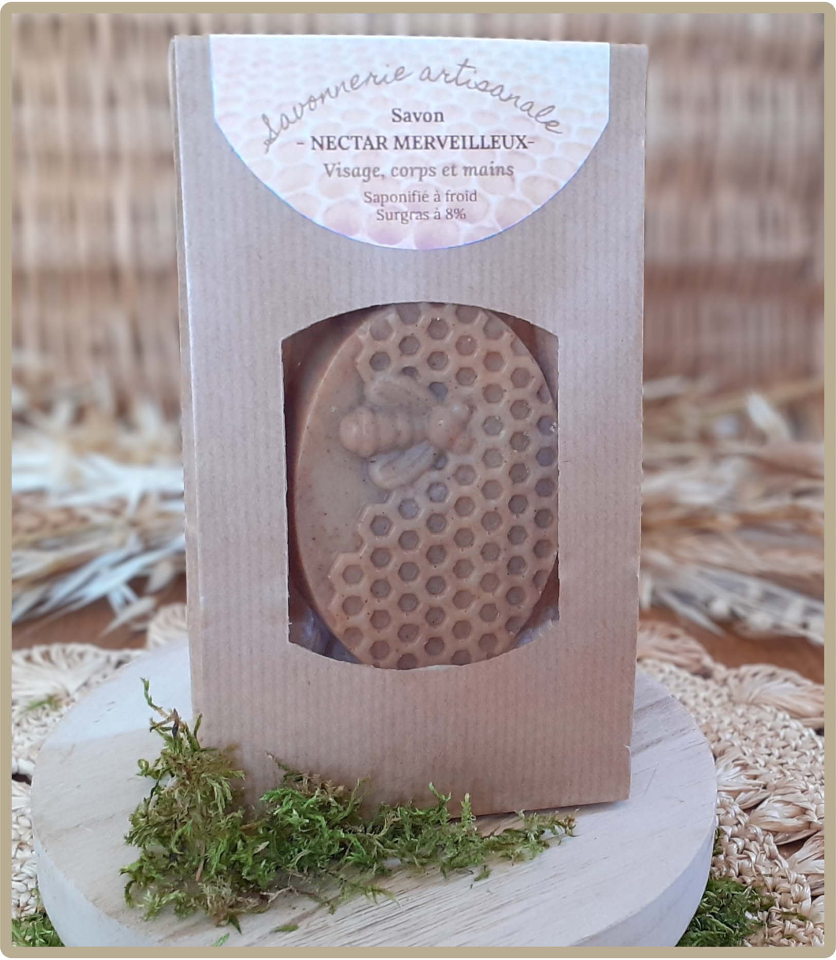 SAVON SOIN VISAGE, CORPS ET MAINS - Surgras à 8% - Riche en glycérine - Huiles végétales et poudre de cannelle certifiées biologiques - Miel de Meuse - Lait d'avoine fait maison.
